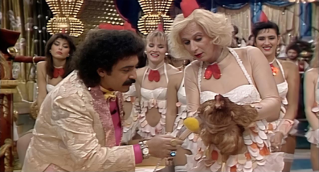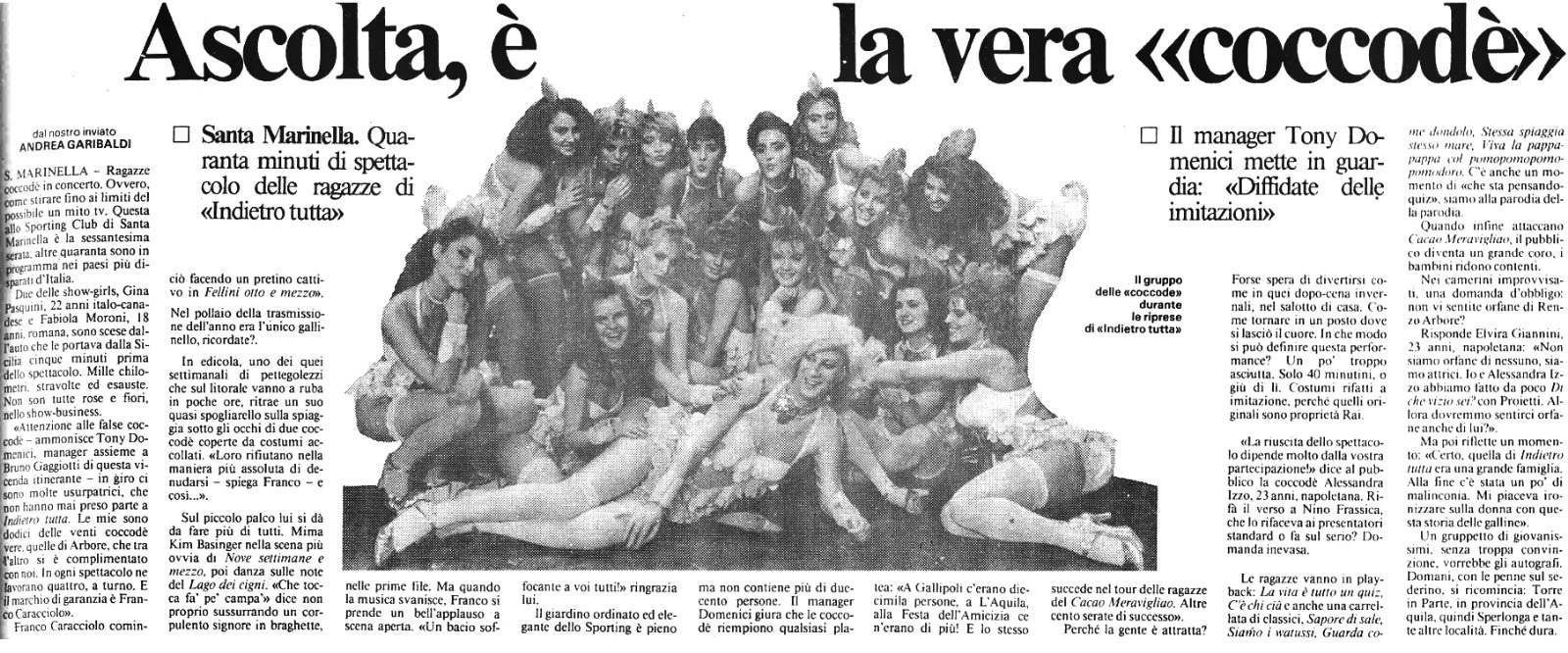 Ma l’apice della popolarità di Caracciolo coincide col periodo in cui il cinema aveva cominciato a chiamarlo meno, inducendolo quindi a una parentesi nel porno a cui risale la sua amicizia con Rocco Siffredi (Caracciolo è incarnato da Mario Pirrello nella recentissima serie Supersex con Alessandro Borghi, dedicata alla vita del pornodivo per antonomasia). Il massimo claim to fame di Caracciolo – dicevamo – è quello di essere stato l’unico maschietto nel corpo di ballo delle “Ragazze Coccodè” nella trasmissione di Rai 2 Indietro tutta! (1987-88), concepita dal conduttore Renzo Arbore e da Ugo Porcelli.